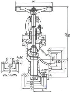 性能參數(shù) 設(shè)計與制造符合中國國家標準 1、基本結(jié)構(gòu)形式:角式 2、公稱壓力:PN1.6-4.0(MPa) 3、公稱通徑:DN15-300(mm) 應(yīng)用規(guī)范 遵循規(guī)范 STANDARD 設(shè)計與制造 GB12233/GB 12235 結(jié)構(gòu)長度 GB 12221/JB96(長系列) 結(jié)構(gòu)長度 GB78/JB79(GB、HG、SH) 壓力試驗 GB/T 13927 標志 GB 12220 供貨 GB/T12252 1.6MPa主要連接尺寸 DN in L D D1 D2 f b z-φd Do H1 H2 W 15 1/2 65/90 95 65 45 2 14 4-φ14 100 240 265 7 20 3/4 75/95 105 75 55 2 16 4-φ14 100 245 270 7.5 25 1 80/100 115 85 65 2 16 4-φ14 120 250 275 8.5 32 21/4 95/105 135 100 78 2 18 4-φ18 140 260 290 12 40 21/2 100/115 145 110 85 2 18 4-φ18 140 290 325 14 50 2 115/125 160 125 100 2 20 4-φ18 160 300 335 19 65 21/2 145 180 145 120 2 20 4-φ18 180 355 400 27 80 3 155 195 160 135 2 22 4-φ18 240 400 450 42 100 4 175 215 180 155 2 24 8-φ18 240 455 495 50 125 5 200 245 210 185 2 26 8-φ18 280 530 560 64 150 6 240/225 280 240 210 2 28 8-φ23 320 605 650 85 200 8 275 335 295 265 2 30 8-φ23 360 650 770 155 2.5MPa主要連接尺寸 DN in L D D1 D2 f b z-φd Do H1 H2 W 15 1/2 65/90 95 65 45 2 16 4-φ14 120 245 270 7.5 20 3/4 75/95 105 75 55 2 16 4-φ14 120 250 275 8.8 25 1 80/100 115 85 65 2 16 4-φ14 140 260 290 11 32 21/4 95/105 135 100 78 2 18 4-φ18 140 290 325 13 40 21/2 100/115 145 110 85 3 18 4-φ18 160 300 335 18 50 2 115/125 160 125 100 3 20 4-φ18 180 355 400 31 65 21/2 145 180 145 120 3 22 8-φ18 220 400 450 39 80 3 155 195 160 135 3 22 8-φ18 280 450 495 50 100 4 175 230 190 160 3 24 8-φ23 320 530 590 60 125 5 200 270 220 188 3 28 8-φ25 380 600 650 75 150 6 240/225 300 250 218 3 30 8-φ25 400 650 770 98 200 8 275 360 310 278 3 34 12-φ23 450 700 850 170 產(chǎn)品尺寸