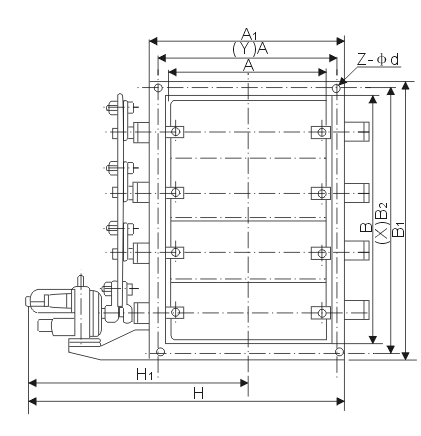 電動(dòng)矩形百葉式調(diào)節(jié)蝶閥主要外形連接尺寸