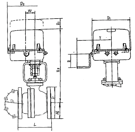 PN64電動(dòng)O型切斷球閥外形尺寸 mm |