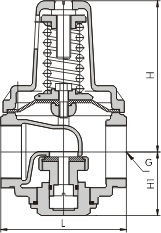 出口壓力下降,彈簧推開隔膜和閥瓣開啟減壓閥。 下游用水(關閉)時: 主要外形尺寸