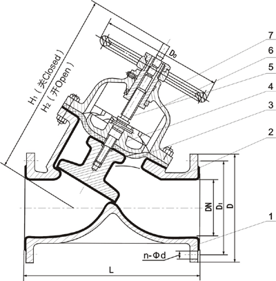 | 產(chǎn)品特點(diǎn) 設(shè)計(jì)與制造:GB122239 結(jié)構(gòu)長(zhǎng)度:GB12221、JB1688 法蘭連接尺寸:GB4216、JB78 G45J直流式襯膠隔膜閥,直流式隔膜閥,襯膠隔膜閥 產(chǎn)品用途 本閥專用于控制非腐蝕性或一般腐蝕性介質(zhì),閥體內(nèi)腔表面無襯里或覆有可供選擇的各種橡膠,適用于不同工作溫度和流體管路。 適用溫度:≤85℃、≤100℃、 ≤120℃(按照襯里和隔膜材料) 壓力等級(jí):PN0.6、1.0、1.6 產(chǎn)品材料閥體:鑄鐵、球墨鑄鐵、碳鋼、不銹鋼閥蓋:鑄鐵、球墨鑄鐵、碳鋼、不銹鋼 襯里:無襯里、橡膠 隔膜:橡膠 閥瓣:鑄鐵、碳鋼 閥桿:碳鋼、不銹鋼手輪:鑄鐵 產(chǎn)品測(cè)試襯里層:電火花檢測(cè)試驗(yàn)與檢驗(yàn)按GB/T13297標(biāo)準(zhǔn) 公稱壓力:PN(Mpa) 閥體:PN×1.5 密封:PN×1.1 結(jié)構(gòu)特點(diǎn)隔膜閥是一種特殊形式的截止閥;1、彈性密封的開閉件,確保沒有內(nèi)漏; 2、流線型的流道,使得壓力損失??; 3、沒有填料函,因此沒有外漏; 4、閥體與蓋被中間隔膜隔開,使得隔膜上方的閥蓋,閥桿零件不受介質(zhì)侵蝕; 5、隔膜可更換,維護(hù)費(fèi)用低; 6、襯里材料的多樣性,可適用于各種介質(zhì),并具有良好的耐腐蝕性。 襯膠直流式隔膜閥主要尺寸及重量